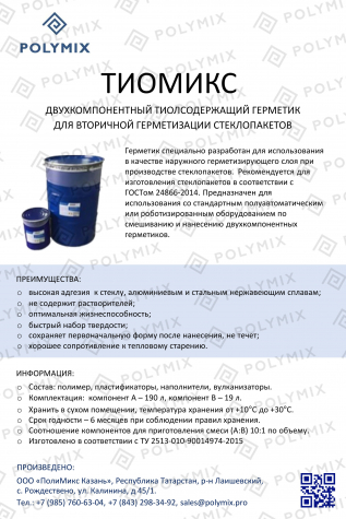 Двухкомпонентный герметик холодного отверждения разработан на основе тиолсодержащего полимера, отверждаемый по классической реакции взаимодействия концевых SH- групп с диоксидом марганца.